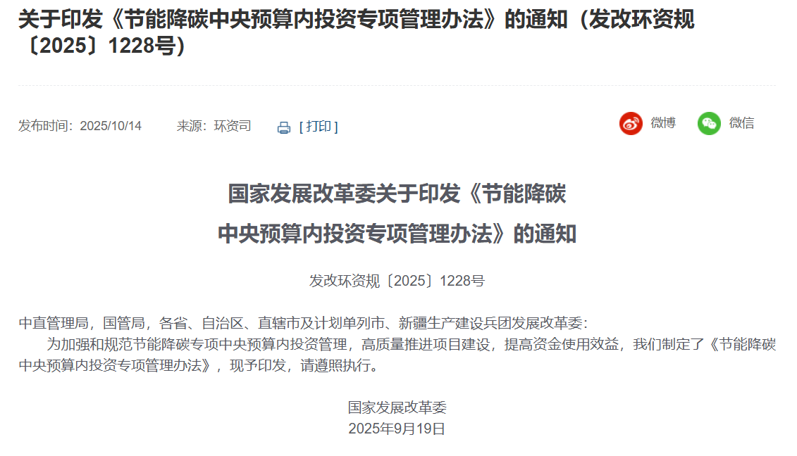 10月14日消息,國家發(fā)展改革委近日印發(fā)《節(jié)能降碳中央預(yù)算內(nèi)投資專項管理辦法》(以下簡稱《管理辦法》)。 辦法指出,支持電力、鋼鐵、有色、建材、石化、化工、機械等重點行業(yè)節(jié)能降碳改造。支持以工業(yè)園區(qū)、產(chǎn)業(yè)集群為載體整體部署并規(guī)模化實施的節(jié)能降碳改造。支持供熱、算力等基礎(chǔ)設(shè)施節(jié)能降碳改造。支持中央和國家機關(guān)節(jié)能降碳改造。